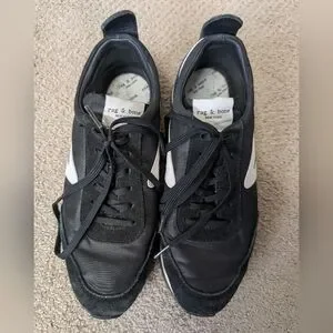 Rag & Bone Retro Runner Low Top Lace Sneakers Black White Womens EU 38.5 US 8.5