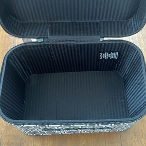 BEBE - NWT- MAKEUP - TRAINCASE. RAISED RHINESTONE WRITING. BLK & WHITE NAME LOGO