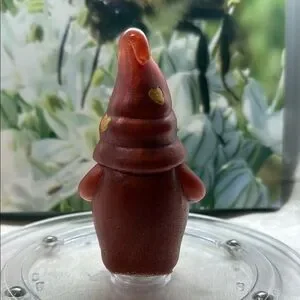 Charming resin gnome figurine with 'Love' detail. Features a red body and gold accents. Perfect for home decor.