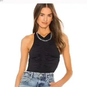 A.L.C. Black Stretch Ruched Adley Racerback Top.