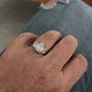 Elegant certified emerald cut platinum lab diamond engagement ring