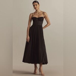 Elegant black pleated dress. . Perfect for evening wear. Featuring an elegant sweetheart neckline, alluring corset-inspired bodice, and dynamic all-over pleating, the Hutch Amara Dress pairs its playful silhouette with a modern edge. Featuring an elegant sweetheart neckline, alluring corset-inspired bodice, and dynamic all-over pleating, the Hutch Amara Dress pairs its playful silhouette with a modern edge. In 2010, New Yorker Daniel Saponaro launched Hutch, a contemporary womenswear brand recognized for garments that are equally easy and luxe. Emphasizing timeless sophistication over trend, the label's defined aesthetic showcases Saponaro's love of vibrant colors, conceptual prints, and feminine tailoring in every made-for-you piece.