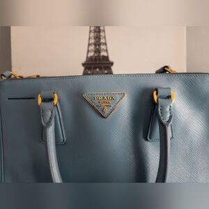 Prada Medium Saffiano Lux Galleria Double Zip Tote w/Adjustable Strap-Light Blue