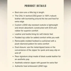 LGND Footwear The CALI Boot in Olive Green Size 10