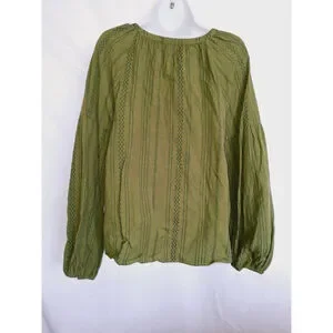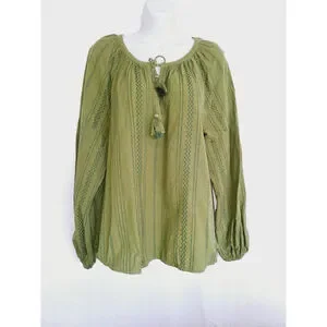 Crown & Ivy Green Size L peasant embroidered 100% cotton southwestern top