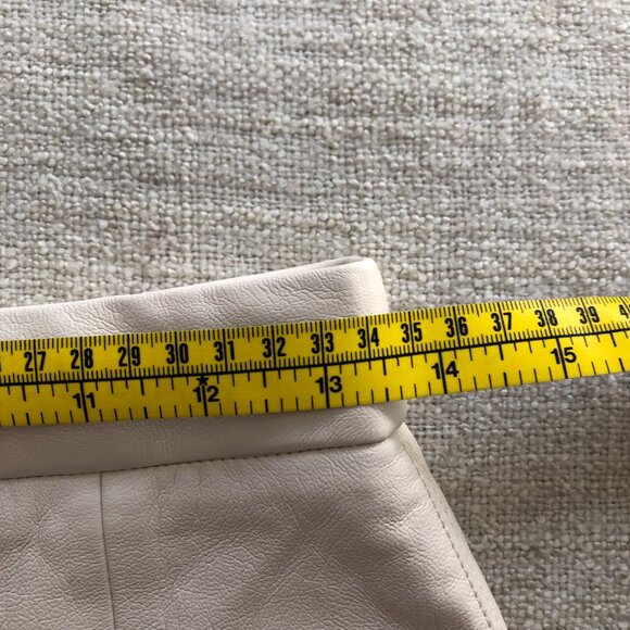 Faux leather mini skirt from Aritzia. Some wrinkles from folding, otherwise excellent condition. More of an ivory than a true white color.