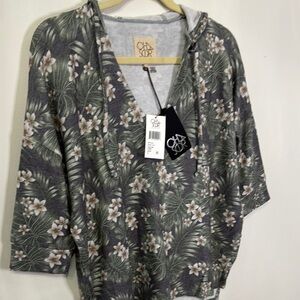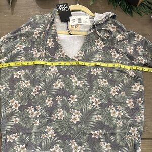 Chaser Floral Palm Print Top Green 3/4 Sleeve with a Hoodie New with Tag