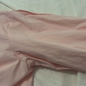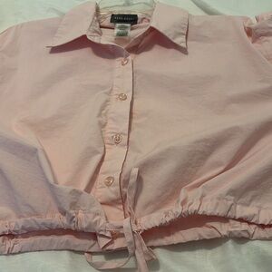 Baby Pink Button-Up Cropped Blouse top puffy long sleeve relaxed fit SZ SM chic