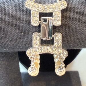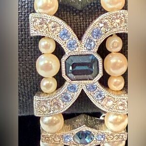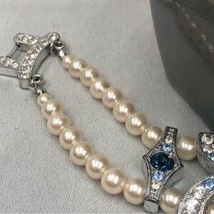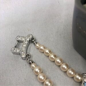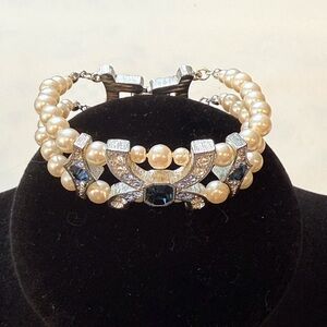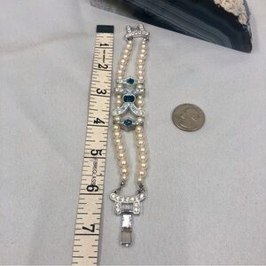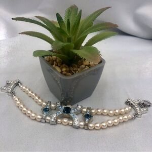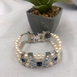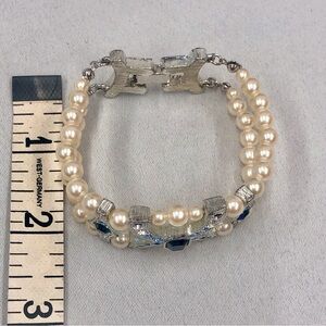 Vintage 2 Strand faux pearl blue rhinestone bracelet