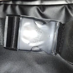 Sleek black design. Versace logo on front. Adjustable strap.