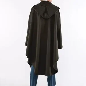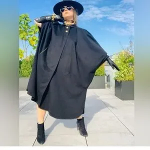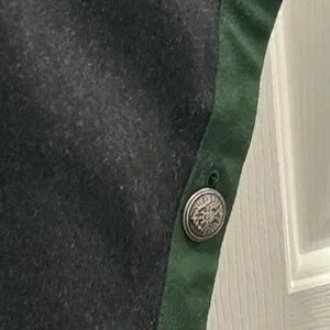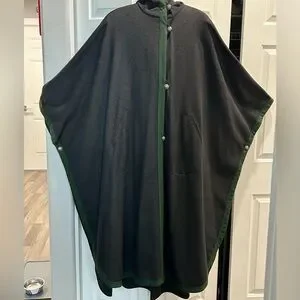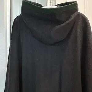 This Beautiful Wool Trachten Maxi Cape has attached hood, silver buttons hallmarked with H. Moser Salzburg Crest, cape buttons on the side and has two front slant pockets. Color Black with Loden Green Trim. This a Gorgeous Like New Classic yet Modern Cape. This Cape is beautiful, Timeless, Loden Wool quality. Century Old Alpine Style will Keep you warm and looking chic. This cape is the perfect balance between Tracht (Traditional Austrian or German) and Modern style, whether you are going on a weekend holiday getaway or to the city you will stay dry warm and look stunning.