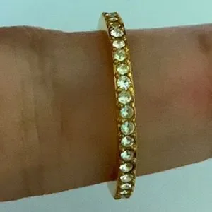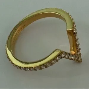 Elegant chevron design. Gold accents with white enamel. Sparkling crystal embellishments.