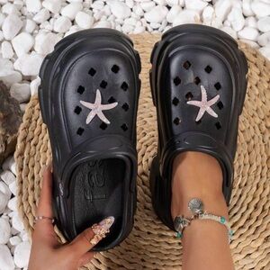 Women's CROC-Like Black Platform Clogs