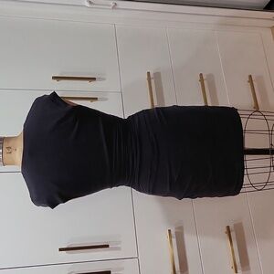 This quality designer dress can be dressed up or down for a variety of occasions. Its sleek ruched design offers a flattering fit, making it a versatile addition to your wardrobe.
