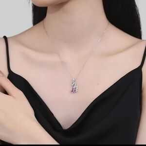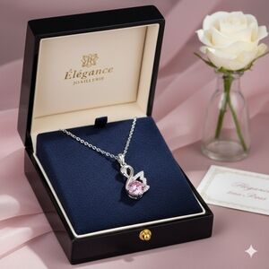 1 CT Moissanite Diamond Sakura Pink Swan Necklace Anniversary Birthday Gift