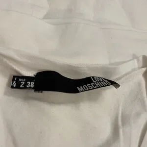 White tee featuring a chic graphic with a red plaid skirt design. Ideal for casual wear.
