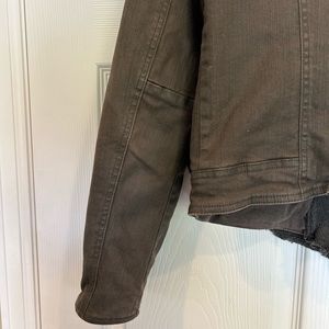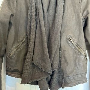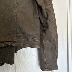 Free People Drape Front Coated Denim Moto Jacket | Olive/Green | Size 10