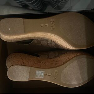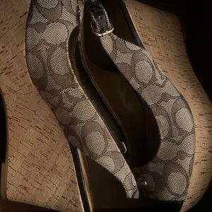 Never worn size 8 coach wedges! Beautiful shoes wish they fit me! My mom bought them and then never wore them because of knees surgery. Coach brand