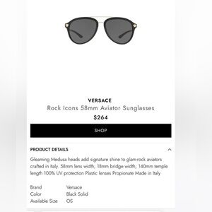 Flash sale🔥EUC Authentic Versace Sunglasses Black Rock Icons 58’ w/Gold Accents