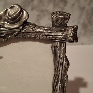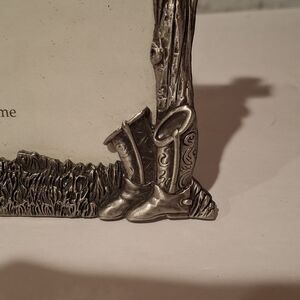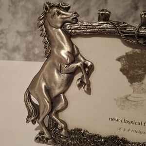 Nice horse western themed heavy metal frame with glass. Metal looks like Pewter. But no confirming markings