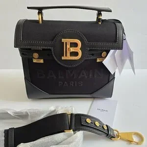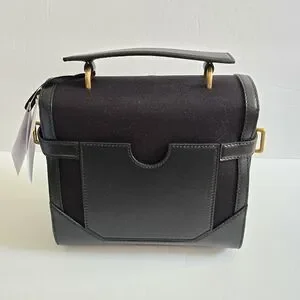 Features: canvas, leather trim, top handle, adjustable/removable crossbody strap, turn-lock flap closure, gold-tone hardware, one interior zip pocket, one interior card slot