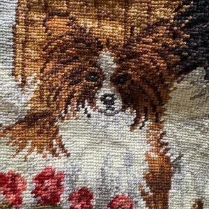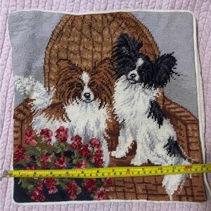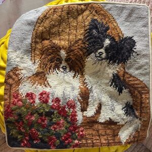 This is a handmade needlepoint Papillon dog pillow cover. The insert is not included! The back is velvet. Zipper entrance. Extremely well made. My Papillons have been over the rainbow bridge for many years. 😥