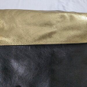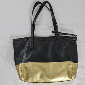 Fossil Black and Gold Leather Top Zipper Sydney Shoulder Tote Bag