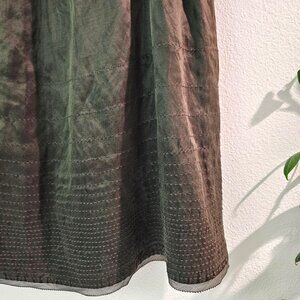 Eileen Fisher Silk/Linen Satin Weave Wonderland A-Line Skirt Sz L Olive Casual