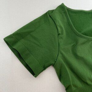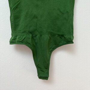 NEW HeyShape Square Neck Thong Bodysuit Green Short Sleeve Women's Large