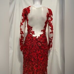 This breathtaking custom-made creation by the extraordinary Tonena is a masterpiece of haute couture, radiating elegance, sensual allure, and fiery intensity. Priced at $1,400, this red sequin gown was originally crafted in Tonena’s European atelier by her small team of seasoned professionals with over 25 years of expertise.