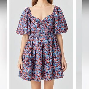 •NEW•ENDLESS ROSE Floral Ruched Poplin Mini Dress with Pockets