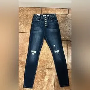 Kancan Sz 26x30 Kurvy Ultra High Rise Whiskered Distressed Skinny Jeans Stretchy