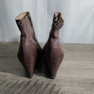 Frye 7.5M Womens Boots Reina Wedge Brown Leather Short Zip Up Ankle Bootie