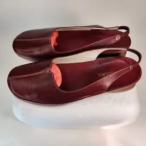 Feel like your inner-hippie chick, ballet dancer in these vintage, Clarks, sling-back, Sz 7. Burgundy leather slip-ons, Pre-owned.