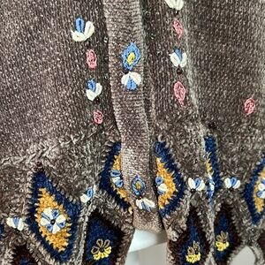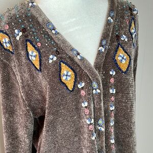 Storybook Knits Vintage Chenille Embroidered Cardigan Sweater