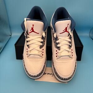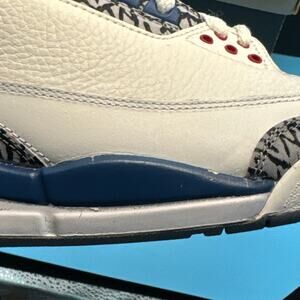 After a long 8 years, Jordan Brand re-released the Air Jordan Retro 3 "True Blue" in 2009. When the first images of the "White/True Blue" Jordan 3 Retro surfaced online in the summer of 2009, the assumption by many sneaker blogs was that it "would be arriving stateside in the near future." Well, unfortunately for Americans, that didn’t happen. The True Blue Jordan 3 did land at a large number of retailers around the world, including major Canadian accounts like Foot Locker, which made them attainable, even if you had to phone a friend for an oop to get a pair. Like the previous True Blue Jordan 3 Retro, the 2009 version featured the Jordan Jumpman logo on the heel instead of the OG Nike Air as Tinker Hatfield intended it. But with 8 years between releases sneakerheads were ready for the Air Jordan Retro 3 "True Blue" to return, regardless of the heel logo, and the release sold out over the course of a few weeks. These shoes are 100% and come with their original box. They are missing their original shoe card. These shoes are in pretty good condition. As indicated in the photos. These shoes do have “chipping” in the blue paint of the midsole on both right and left shoe. The bottom of the shoes do show signs of wear. The air bubble of both right and left shoes are “foggy” due to oxidation. As of this date (2/14/2025) these shoes do not show any cracking or degrading of the soles
