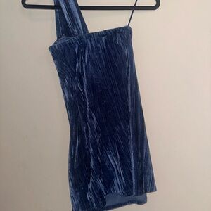 Urban Outfitters Blue Velvet One Shoulder Dress