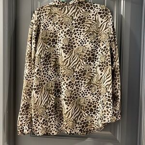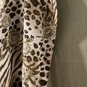 Very nice olive green tank with floral and leopard print long sleeve top over it! Tank is 2x by Falls Creek 57% cotton 38% polyester 5% spandex NWT. Blouse is long sleeve by Impressions size 2x 100% polyester also NWT if you have any questions feel free to ask me! I’m here to help!!