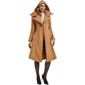 💫 Women Cream Long Trench Coat Wool Winter GothLapel Outwear Thick Hood Peacoat