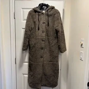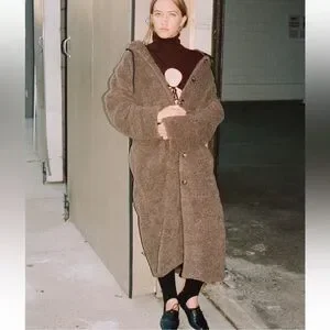 $600 THAKOON Brown Faux Fur Teddy Hooded Oversized Coat Size Medium NWT