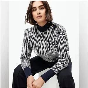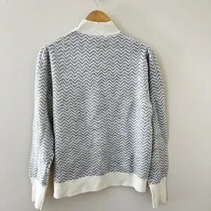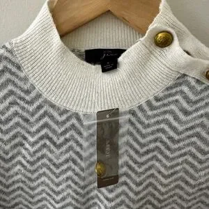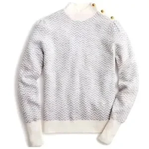 J.Crew Button-Detail Mockneck Sweater in Herringbone - Grey / White NWT