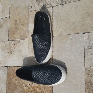 Tory Burch Quilted Leather Upper Sneakers; Black; Size 8M; gently used but in great condition