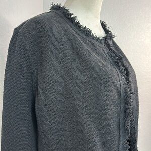 NIC + ZOE Black FRINGE MIX KNIT JACKET Size Large NWT