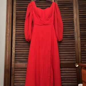 Make a statement with this stunning red evening gown. Perfect for any formal occasion.