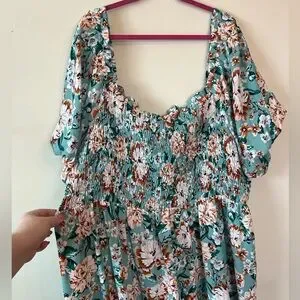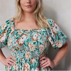 Plus Size LC Lauren Conrad Balloon Sleeve Smocked Floral Midi Dress