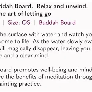 NEW Buddha Board, Relaxing, Master Art of Letting Go by painting and creating with water. Allows quieting your mind, relax and experience mindfulness. Meditational. New and never used.