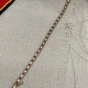 Vintage Gold Over 925 Sterling Silver Ruby & CZ Tennis Bracelet