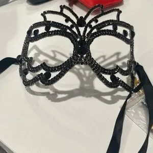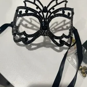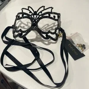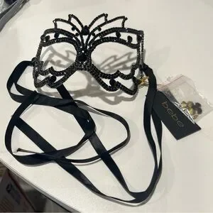 Bebe Masquerade Black Rhinestones Is Mask, Mardi Gras Mask, Metal