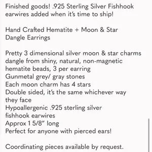 Hand Crafted Earrings Hematite Moon & Star Dangle Pierced Silver Gray Grey