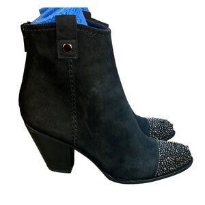Stuart Weitzman Womens 6.5 Black Suede Ankle Boots Studded Toe Luxury Cowgirl